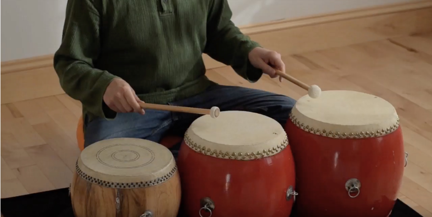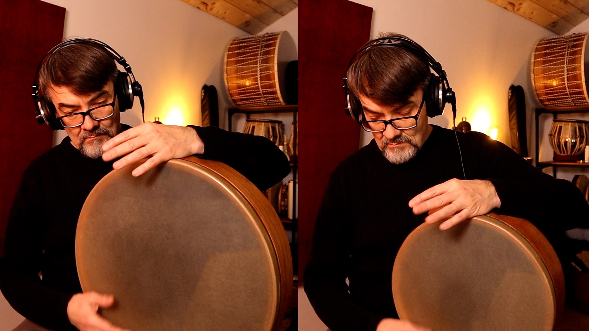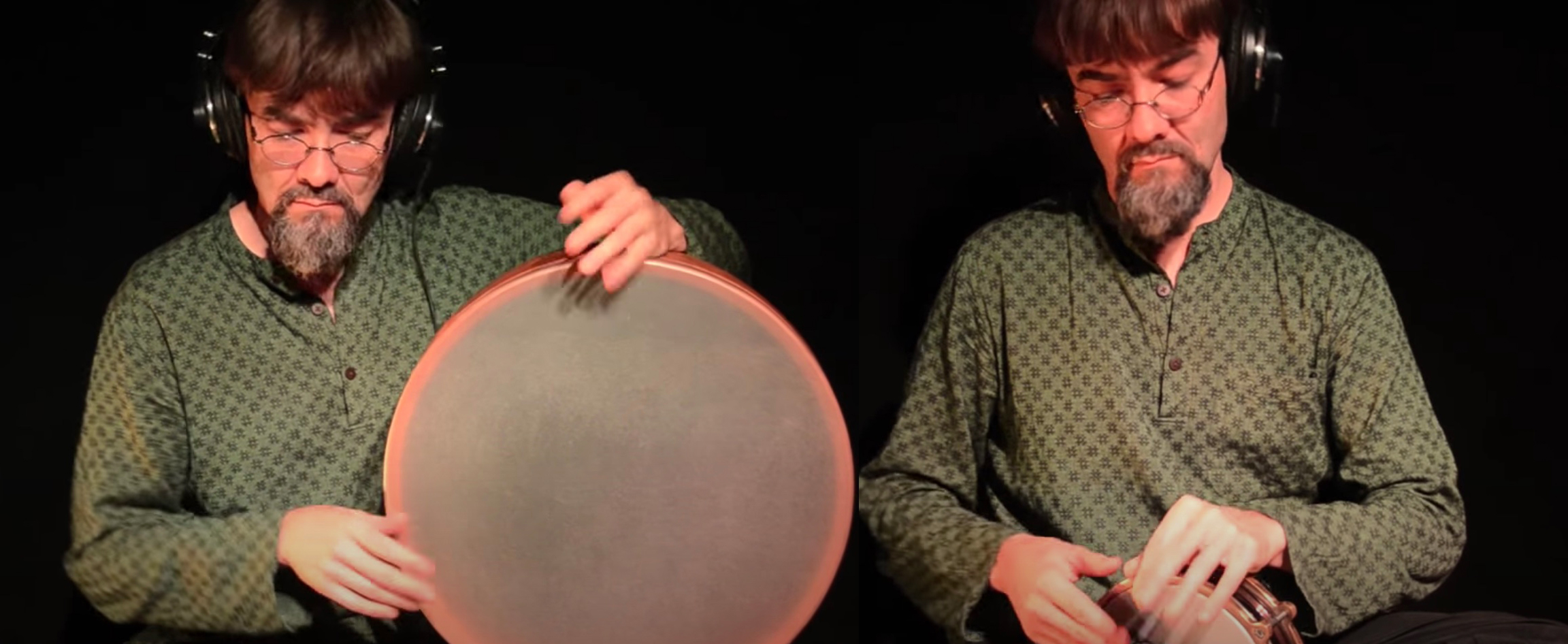 An original trance-inducing rhythm composed by Ken for two different frame drums, ideally of different sizes and pitches. This tutorial video features Ken playing the rhythm on 18" and 14" Cooperman tars.
